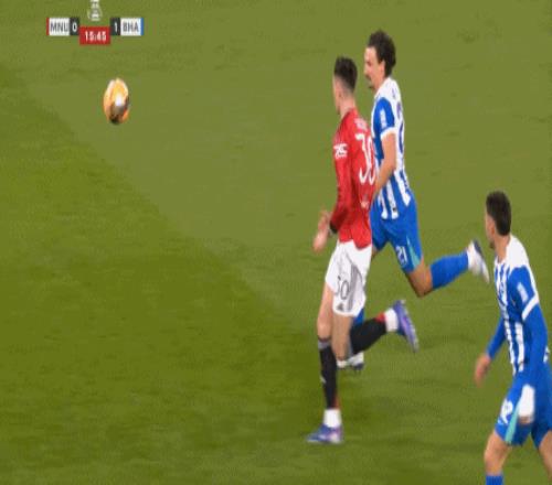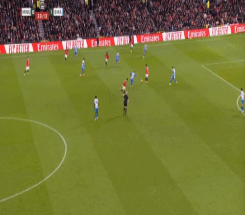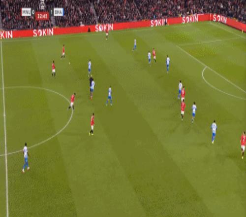 你还别不相信,因为在第31分钟这次防守,布莱顿又用转移打到了曼联的左路,你看是谁在和芒特一起防守?