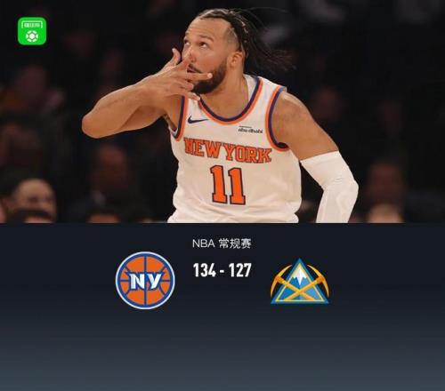 尼克斯双加时134127掘金,布伦森42+8+9,约基奇30+14+10